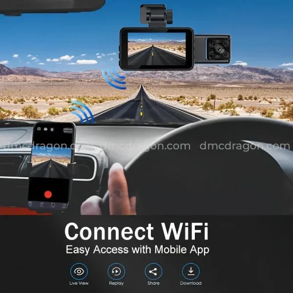 ₨ 11,500Video capture resolution Front Camera 1080P 30fps 720P 30fps Rear Camera 1080P 25fpsG-sensor Built-in 3-Axis G-Sensor Lens Front & Rear Cameras: 170° Wide-Angle Lenses Storage Supports Up to 64GB Night Vision Yes Record Audio On / OFF Loop Recording 1 min / 3 min / 5 min Screen Size 9.66 Inch Black Box H45 Traffic Recorder Car Dashcam 3in1 DVR WiFi
