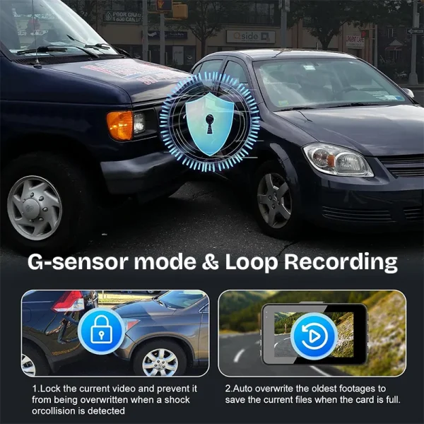 ₨ 8,500Video capture resolution Front Camera 1080P 30fps 720P 30fps Rear Camera 1080P 25fpsG-sensor Built-in 3-Axis G-Sensor Lens Front & Rear Cameras: 170° Wide-Angle Lenses Storage Supports Up to 32GB Night Vision Yes Record Audio On / OFF Loop Recording 1 min / 3 min / 5 min Screen Size 2 Inch USB Car DVR 1080P Full HD Dash Camera