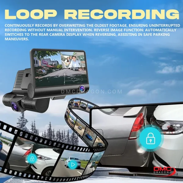 3-Channel 4″ IPS Dash Camera Screen for Cars Full HD 1080P DVR
