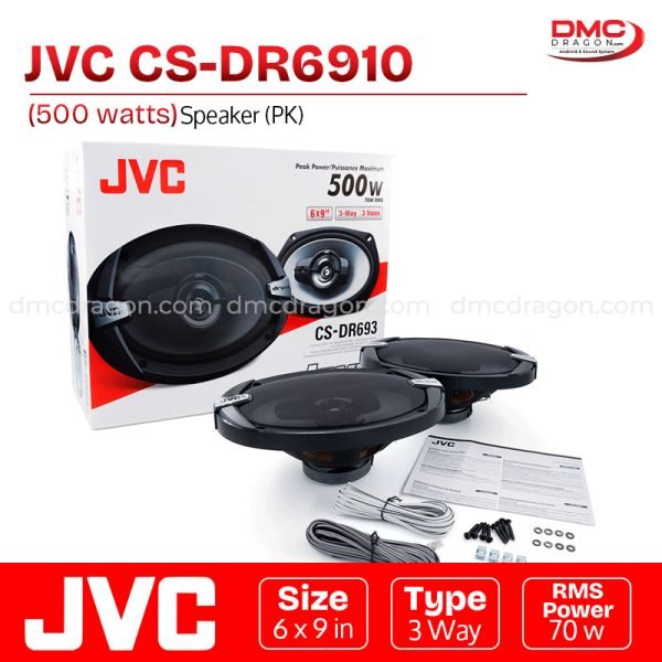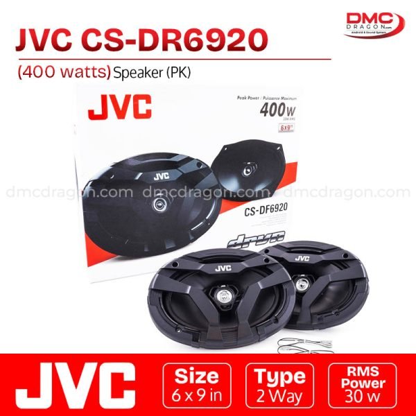 ₨ 4,900Speaker System 3 Way Type Power Handling 70Wrms, 500W peak Size 6×9 Inch JVC CS-DR6920 Speaker Two Way 400W Replica