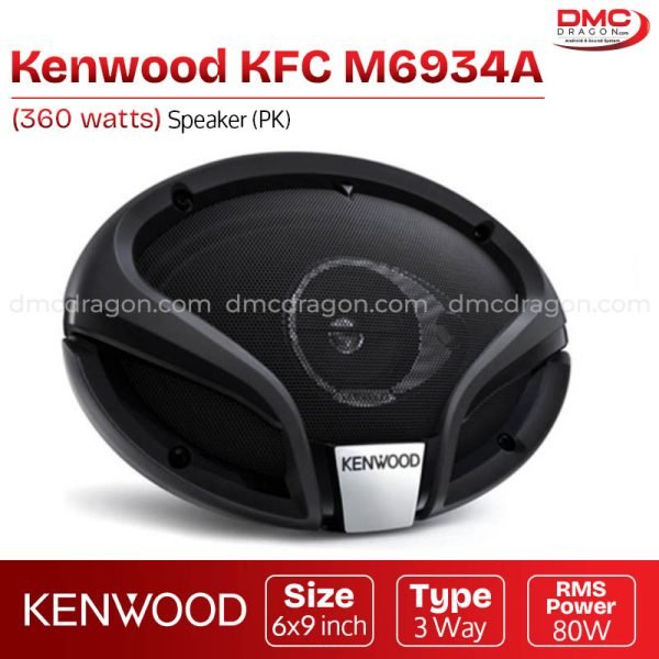 ₨ 4,100Speaker System 3 Way Type Power Handling 80Wrms, 360W peak Size 6×9 Inch Kenwood KFC 6944R Speaker Four Way 450W Replica