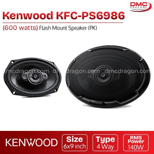 ₨ 4,900Speaker System 5 Way Type Power Handling 650Wrms, 1200W peak Size 6×9 Inch Kenwood KFC-PS6986 EX Flash Mount Speaker Four Way 600W Replica