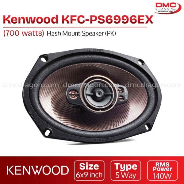 ₨ 5,100Speaker System 4 Way Type Power Handling 140Wrms, 600W peak Size 6×9 Inch Kenwood KFC-PS6996EX Flash Mount Speaker Five Way 700W Replica