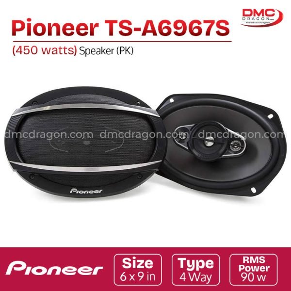 ₨ 4,000Speaker System 3 Way Type Power Handling 300Wrms, 1000W peak Size 6×9 Inch Pioneer TS-A6967SA Speaker Four Way 450W Replica