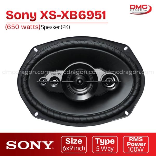 ₨ 4,600Speaker System 3 Way Type Power Handling 50Wrms, 270W peak Size 6×9 Inch Sony XS-XB6951 Speaker Five Way 650W Replica