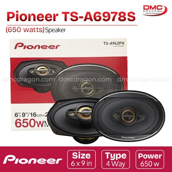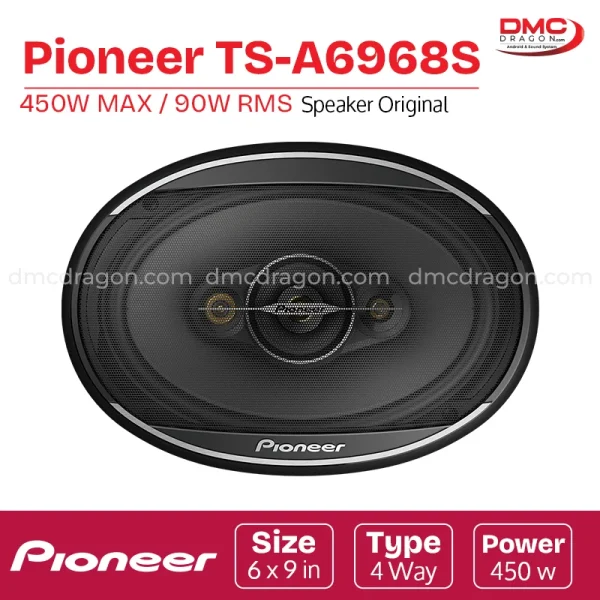 ₨ 22,500Grade A Series Power Handling 70Wrms, 320W peak Impedance 4 ohms Sensitivity (@ 2.83V) 91dB Frequency Response 37 Hz to 31 kHz Pioneer TS-A6968S 450W MAX / 90W RMS 6″ x 9″ 4-Way Speaker