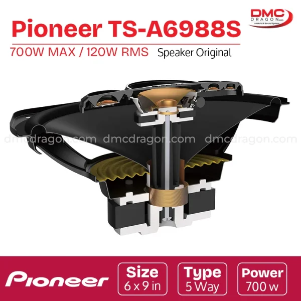 ₨ 24,000Grade A Series Power Handling 100Wrms, 650W peak Impedance 4 ohms Sensitivity 92dB Frequency Response 29 Hz to 33 kHz Pioneer TS-A6988S 700W MAX / 120W RMS 6″ x 9″ 5-Way Car Speaker