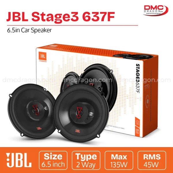 ₨ 15,500Power Handling 45Wrms, 225W peak Impedance 3 ohms Sensitivity (@ 2.83V) 92dB Frequency Response 55Hz – 20kHz JBL Stage3 637F Car Speaker 6.5in 45Wrms /135W Peak Original