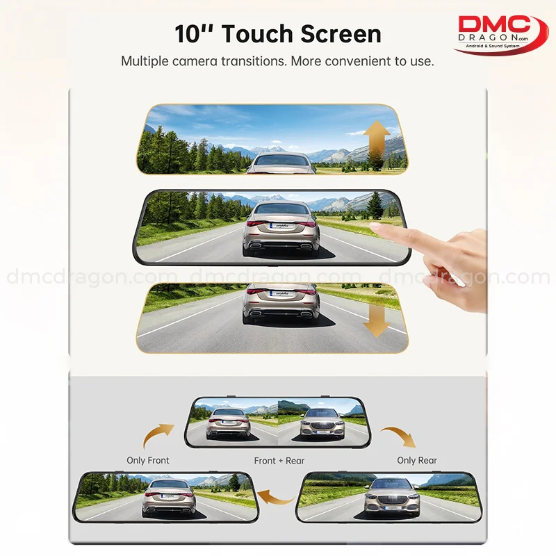 You can display the front and rear camera feeds simultaneously on a single screen. The touch interface allows you to select which view is most prominent or switch between them with a swipe.
