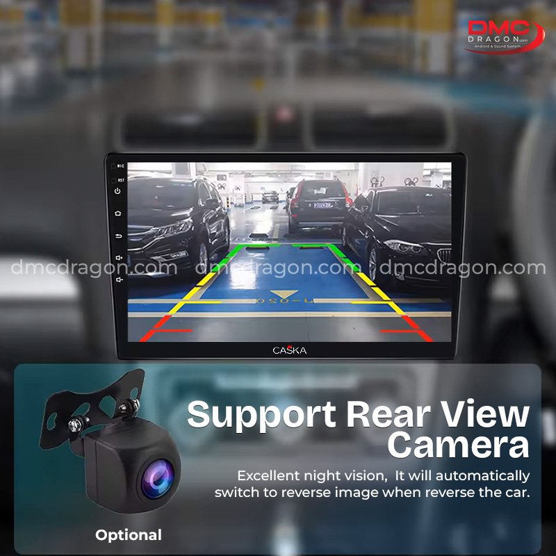 Supports reverse camera with clear rear view display. Parking guidelines appear on screen to assist with alignment. Makes parking safer, easier, and more accurate.