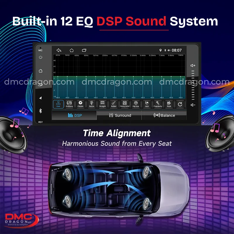 Adjust sound effects for optimal music and audio quality. Includes a 12-band equalizer for detailed sound control. Also Control Subwoofer on or off.