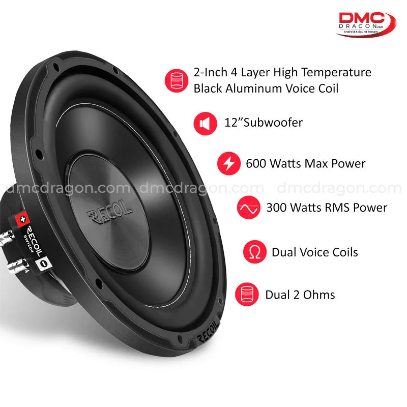 Recoil Echo series 12-Inch Dual 4-ohm Car Subwoofer, Peak Power: 600 Watts | RMS Power: 300 Watts